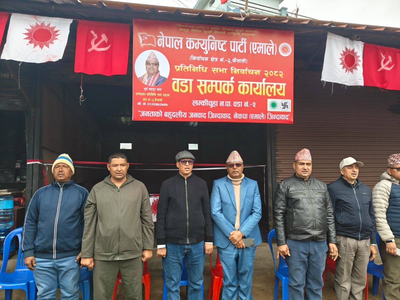 नेकपा एमालेले कैलाली निर्वाचन क्षेत्र नं. २ अन्तर्गत लम्कीचुहा नगरपालिका वडा नं. ८ को बचैलामा वडा सम्पर्क कार्यालय स्थापना गरेको छ । बुधबार आयोजित एक कार्यक्रमकाबीच पार्टीका केन्द्रीय सदस्यहरू झपट बहादुर रावल, कमला कुमारी ओली र पवित्रा तिमिल्सेना तथा प्रतिनिधिसभा सदस्य पदका उम्मेदवार सूर्य बहादुर थापाको उपस्थितिमा कार्यालय उद्घाटन गरिएको हो ।
