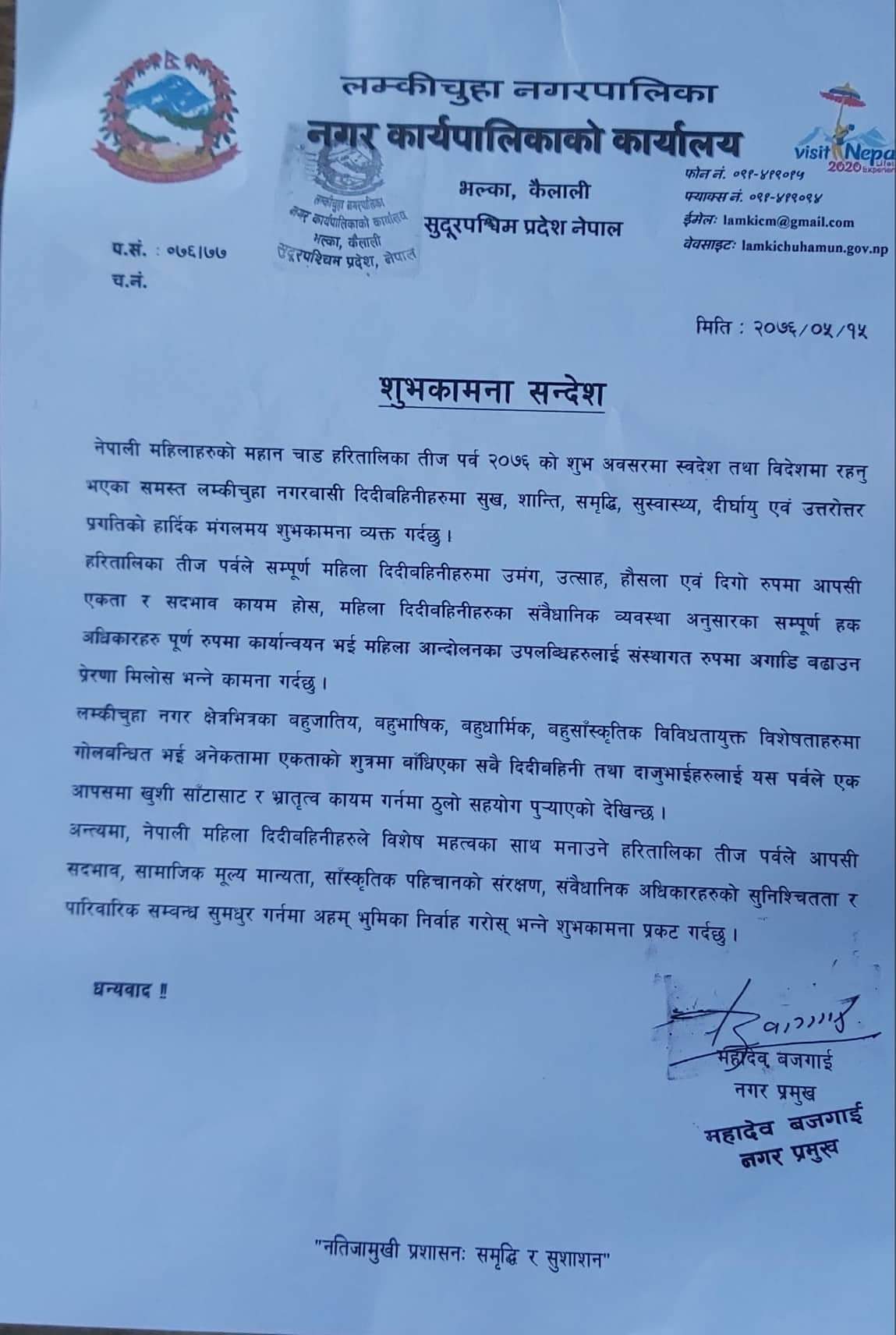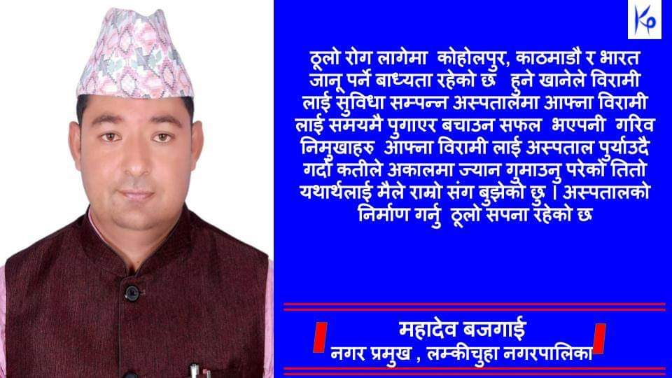 लम्कि चुहाको १ करोड २० लाख मध्ये पनि वडा नम्बर २ को जेष्ठनागरीक मिलन केन्द्रका लागि २० लाख, वडा नम्बर १ को कृषि हाट बजारको पुर्वाधार निर्माणमा १५ लाख, वडा नम्बर ४ को वाल उद्यानका लागि १५ लाख, वडा नम्बर ९ प्रतापपुरमा रहेको खानेपानीको पाईप लाईन बिस्तारका लागि १५ लाख तथा चिसा.....